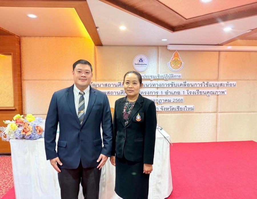 วันพุธที่ 16 กรกฎาคม 2568 นางสาวนารีรัตน์ ธจิตธรรม ผู้อำนวยการโรงเรียนแม่ออนวิทยาลัย มอบหมายให้ นายธนวัฒน์ กองแก้ว รองผู้อำนวยการโรงเรียนแม่ออนวิทยาลัย และนางสาวทัศนวรรณ ปัญญาแดง เข้าร่วมประชุมเชิงปฏิบัติการ ?การพัฒนาสถานศึกษาตามแนวทางการขับเคลื่อน การใช้แบบสะท้อนคุณภาพสถานศึกษา โครงการ 1 อำเภอ 1 โรงเรียนคุณภาพ S:0
