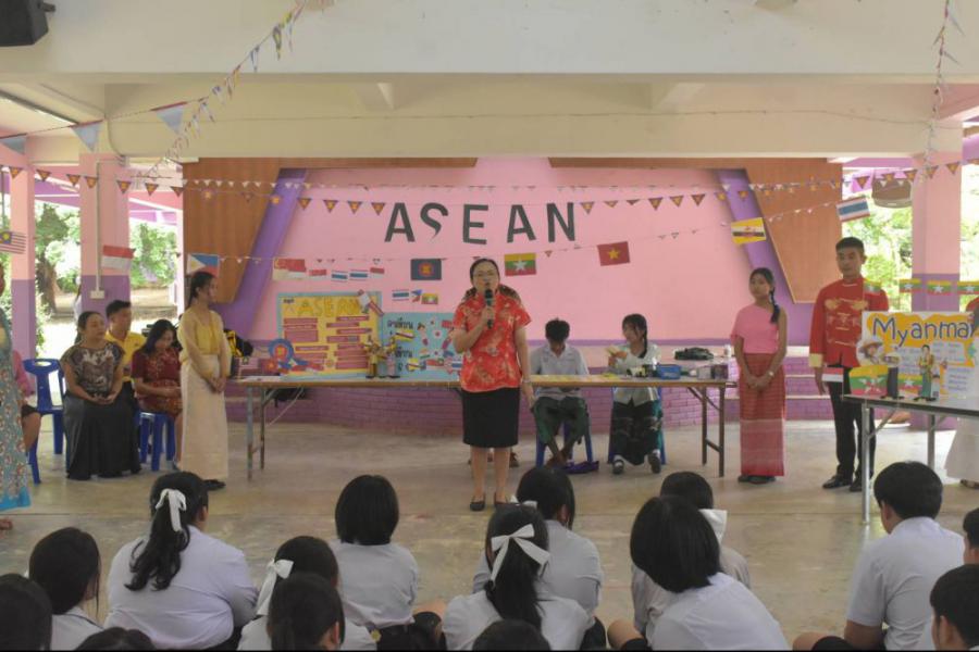 วันอังคารที่ 5 สิงหาคม 2568 นางสาวนารีรัตน์ ธจิตธรรม ผู้อำนวยการโรงเรียนแม่ออนวิทยาลัย ให้เกียรติกล่าวเปิดกิจกรรม ASEAN DAY ปีการศึกษา 2568 พร้อมด้วยผู้บริหาร คณะครู และตัวแทนนักเรียนแต่ละชั้นเรียนเข้าร่วมกิจกรรม ทั้งนี้ คณะนักเรียนระดับชั้นมัธยมศึกษาปีที่ 4 แผนการเรียนสังคมศึกษา และกลุ่มสาระการเรียนรู้สังคมศึกษา ศาสนาและวัฒนธรรม ร่วมจัดกิจกรรม ASEAN DAY โดยมีวัตถุประสงค์ให้นักเรียนมีความรู้ ความเข้าใจเกี่ยวกับประเพณีและวัฒนธรรมประเทศในอาเซียนบนพื้นฐานพหุวัฒนธรรม และสร้างความรัก ความสามัคคีในฐานะพลเมืองโลกที่อยู่ร่วมกันอย่างสันติสุข # 8 สิงหาคม วันอาเซียน (ASEAN Day) S:0