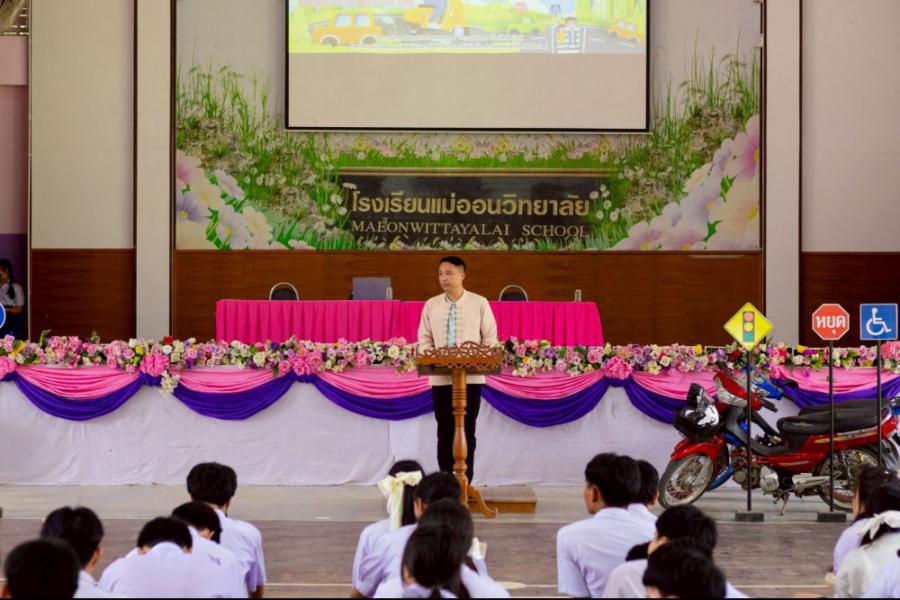 วันที่ 3 กันยายน 2568 นางสาวนารีรัตน์ ธจิตธรรม ผู้อำนวยการโรงเรียนแม่ออนวิทยาลัย มอบหมายให้นายธนวัฒน์ กองแก้ว รองผู้อำนวยการโรงเรียนแม่ออนวิทยาลัย กล่าวต้อนรับคณะวิทยากร องค์การบริหารส่วนตำบลออนกลาง ร่วมกับกองทุนเพื่อความปลอดภัยในการใช้รถใช้ถนน ระดับจังหวัดสำนักงานขนส่งจังหวัดเชียงใหม่ มีคณะครูและนักเรียนระดับมัธยมศึกษาปีที่ 3-6 เข้าร่วมโครงการขับขี่ปลอดภัย รู้วินัยจราจร ประจำปี พ.ศ. 2568 โดยมีนายวราวุธ กันตีมูล นายกองค์การบริหารส่วนตำบลออนกลาง เป็นประธานในพิธี ณ หอประชุมนริศสโมสร โรงเรียนแม่ออนวิทยาลัย S:0